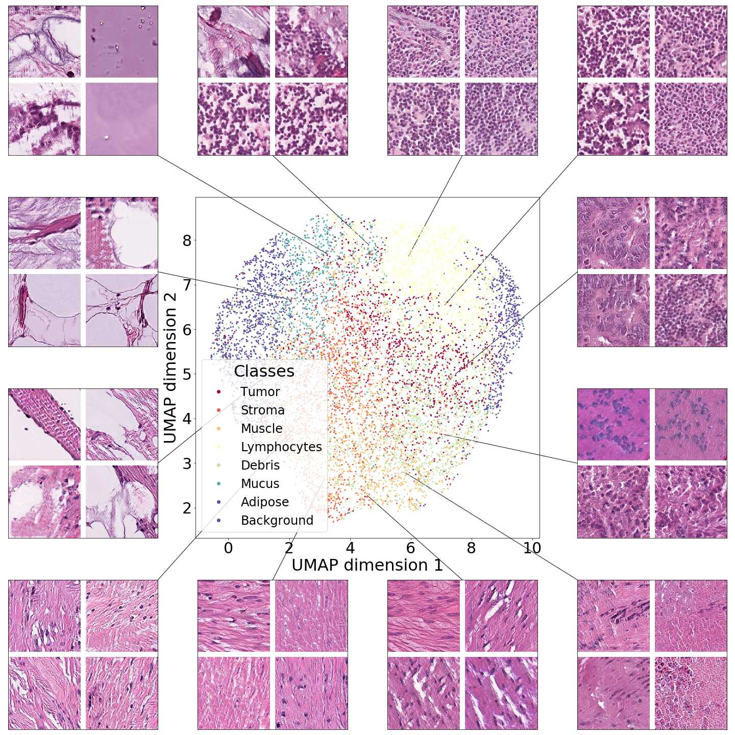 Figure 12 shows that PathologyGAN’s latent space shows a structure regarding tissue types even for samples, although it is not able to reliably generalize the original dataset distribution. Table 2 shows how samples are enough to achieve a reasonable FID with .