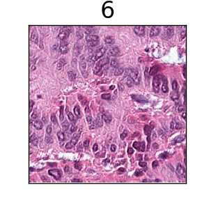 In Figure 4 we show generated images on the left column and the nearest real neighbors on the remaining columns. We present the different tissue types: tumor (i), stroma (j), muscle (k), lymphocytes (l), debris (m), mucus (n), adipose (o), and background (p). From this example, we can conclude that distance in feature space gives a good reference to find the tissue type of generated images.
