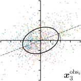 While in most experiments only a single groundtruth coordinate per image and landmark is available, the groundtruth location in our inter-observer experiment is not only encoded as a single coordinate, but as a distribution. Such groundtruth distributions are compared to the distributions predicted by our method by analyzing the parameters of the Gaussian functions. As a measure of size of the distributions, we use the area encoded by the product of the extent of the major axis and minor axis, i.e., . As a measure of anisotropy, we use their ratio, i.e., . Additionally, to compare the predicted and groundtruth orientation for landmarks with a strong anisotropic distribution, the orientation angle with respect to the x-axis is reported.
