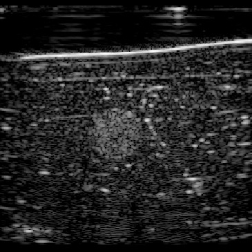 We introduced echogenicity contrast inside inclusions by increasing the standard deviation of of the speckles by in the SoS domain. This means that of the speckles inside lesions have slightly higher SoS values which result in hyperechoic ultrasound characteristics which create hyperechoic inclusions. Hyperechoic lesions are often benign (Gokhale, 2009) but there are cases of malignant lesions among them (Linda et al., 2011). Although generally for malignant lesions other factors, i.e., ill-defined borders, spiculated margins, posterior acoustic shadowing, and microcalcifications are important factors to take into account (Gokhale, 2009; Ramani et al., 2021).