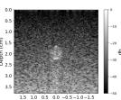 An example of a simulation medium is shown in Figure 6. Consider a medium with a homogeneous background with scatterers randomly distributed inside the medium. Different echogenicities can be created by increasing or decreasing the impedance contrast of the small scatterers or speckles included in the heterogeneity (pink and red dots inside the inclusion in Figure 6). The anechoic region can be modeled by removing the speckles inside the inclusion. The following properties are kept constant through the simulation of the training sets: (i) Echogenicity: only hyperechogenic regions are modeled (by using speckles with a higher standard deviation (i.e., more echoic) than the background for % of the scatterers). (ii) Density of scatterers: the number of scatterers shown as ’Density of reflective points’ in Figure 6 is kept constant and equal to % of the grid points for all training sets. In the following section, these parameters are altered to investigate the stability of the trained networks.